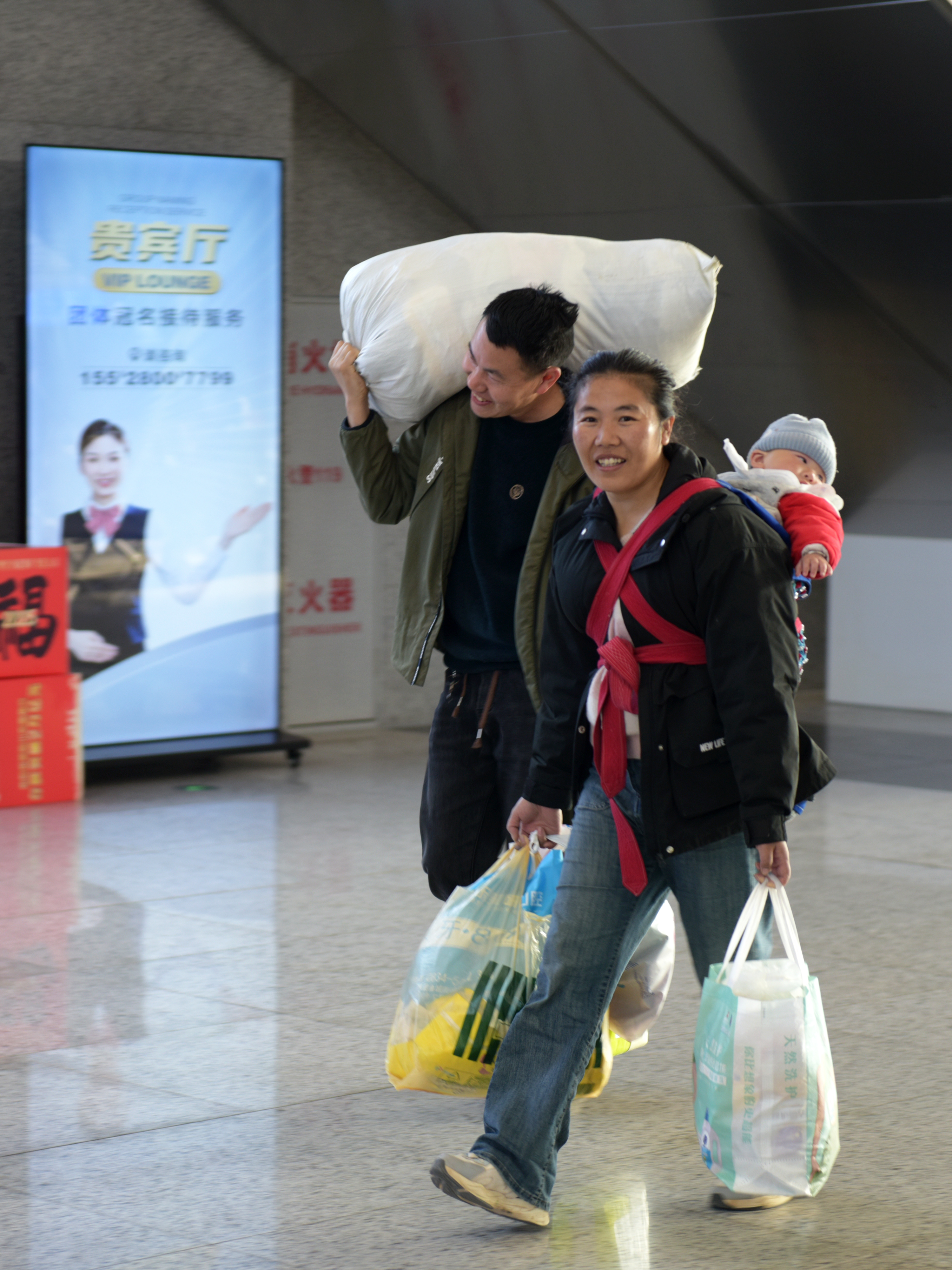 西昌西站候车室,返岗务工的旅客精神饱满。